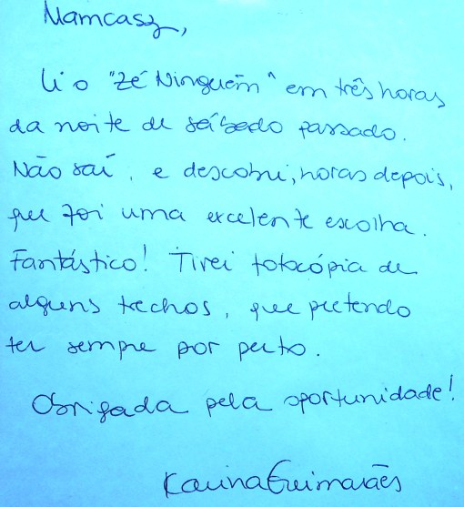 Destaco o seguinte presente recebido da consorte: