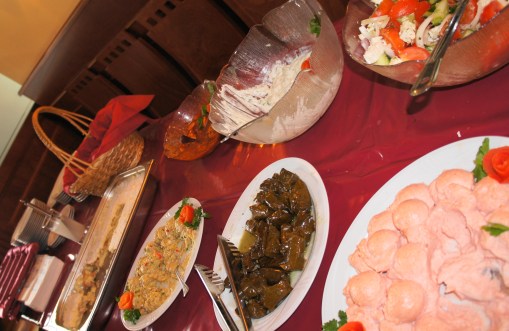 E a refeição, o brunch, a comida, a bebida, a música grega ao fundo?